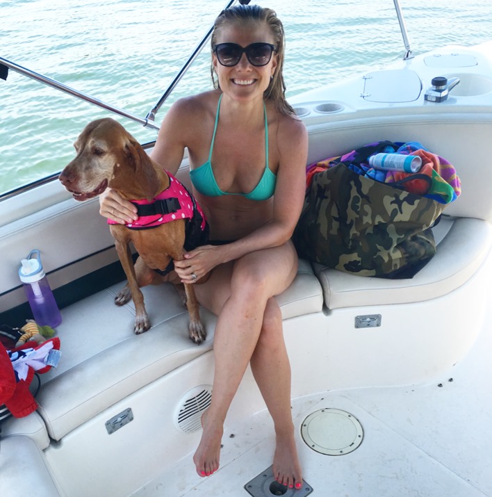 We sped out to a sandbar off a little island on Lake Norman and dropped the anchor before splashing around in the shallow water with Chase and Sadie.