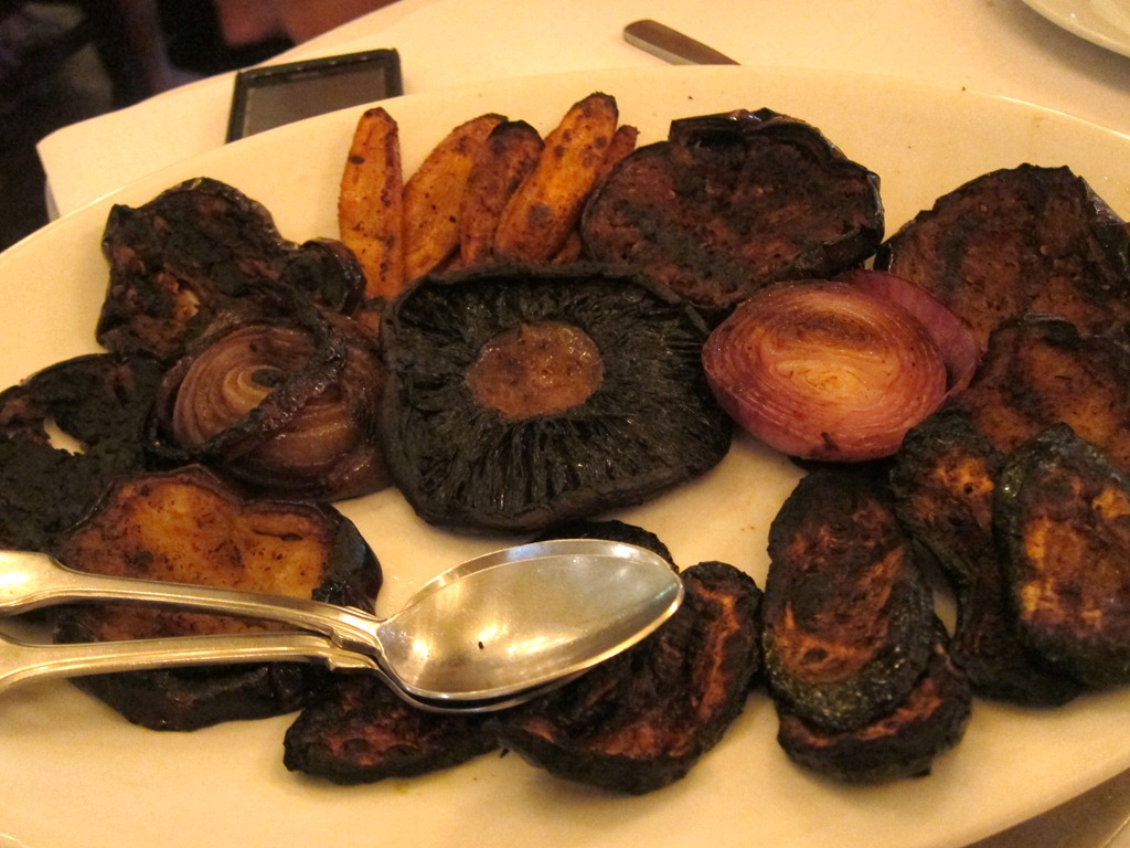 Since dinner was served family style, we ordered a bunch of different dishes to share, my favorite being a toss up between the mushroom ravioli that Katy selected and the blackened vegetables that Michelle and Paula selected.