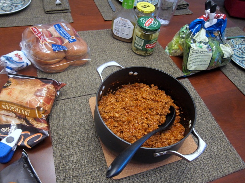 Once I peeled myself off the floor, I took a glorious shower and emerged with a grumbling stomach. My mom came through in the clutch and made sloppy joes for everyone to enjoy for lunch and I filled my plate. Yum!