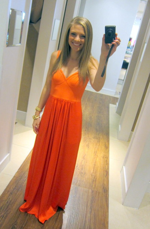 Minda selected stunning floor-length orange gowns from BCBG for her bridesmaids to wear and I bought mine yesterday after trying it on and receiving a thumbs up from the bride-to-be!