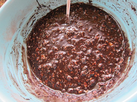 When we arrived home from the grocery store, I headed into the kitchen to get a jump on making a couple of batches of flourless chocolate oatmeal cookies for the winner of Katie’s bake sale.