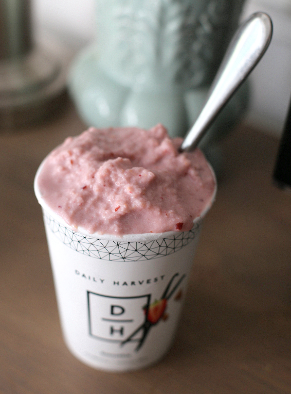 I talked with Mike as I made myself a post-workout smoothie (one of the plant based Daily Harvest protein smoothies — I just added coconut milk, cashew butter and frozen cauliflower) and then gave him some space as I worked in my office.