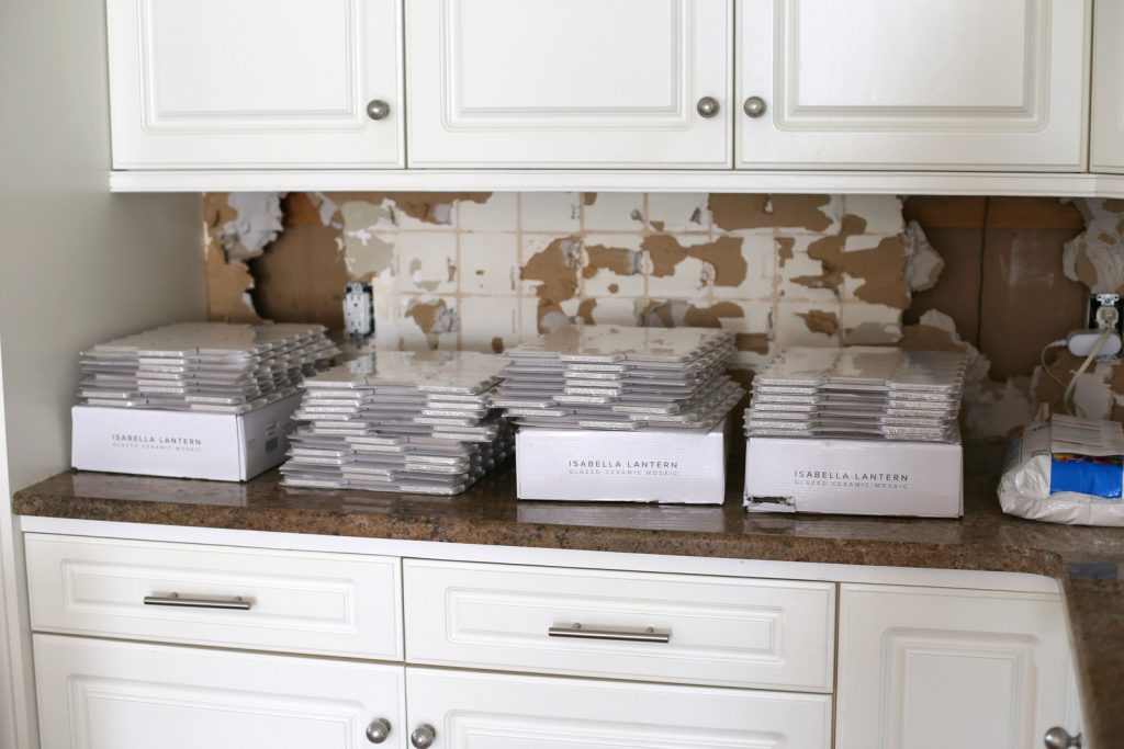 We were responsible for picking up all of his materials over the weekend and then he came by on Monday to begin taking out the old backsplash. What Mike thought would be a two-day project is turning out to be a lot more work than we anticipated. I’m so, so glad we hired Mike to help us because once he removed the old backsplash, he pointed out some seriously uneven gaps between our granite and the kitchen wall behind it and all of this requires a lot more work. Hopefully we’ll have a new backsplash up by the end of the week!