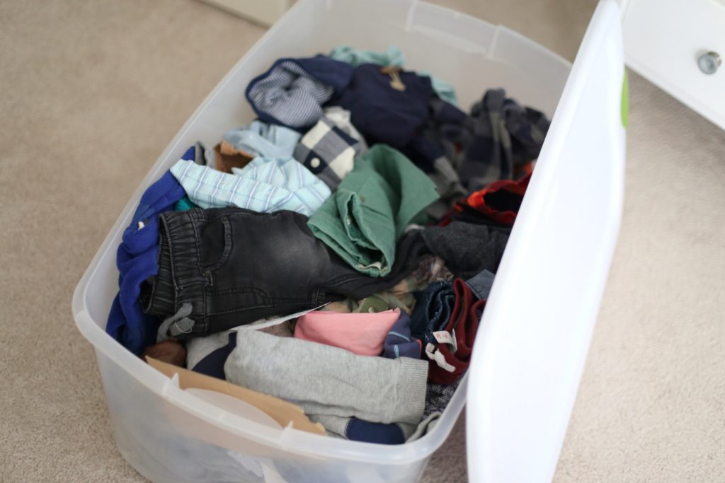 As I heard Chase making noise on the monitor, I quickly logged off the computer and grabbed some 12-18 month baby clothes from the attic to go through since Ryder seems to get bigger every second.