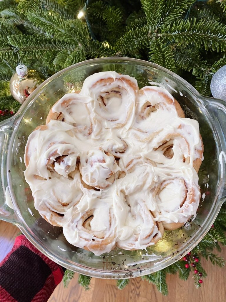 As a kid, I have so many great memories that center around certain special dishes my mom would make for our family on Christmas morning. We’d always have cheesepuff casserole and monkey bread to eat while we dug into our stockings and a frothy, sweet orange julius to drink! I would love to create similar memories for my boys and our family now that we’re two years into having Christmas at our own house. Last year, I made homemade cinnamon rolls following this recipe from Sally’s Baking Addiction and topped them with the cream cheese icing recipe I found on the blog Ambitious Kitchen. They were a huge hit so I’m thinking maybe cinnamon rolls will become a Christmas morning tradition for our family? Cinnamon rolls and monkey bread and cheesepuff casserole!? Bring on all the yummy eats!