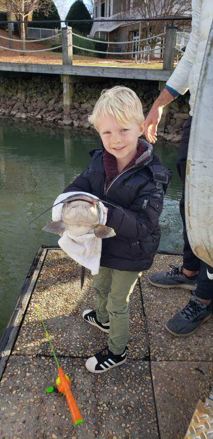 Can’t believe that child caught that huge catfish. Going to have to try hot dogs next time we go.