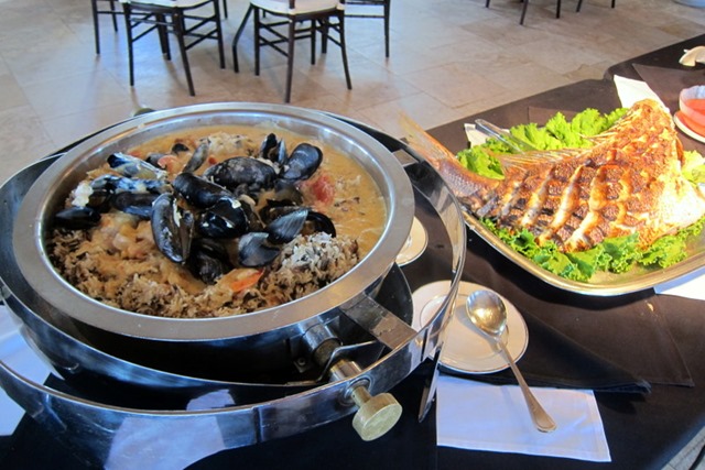 Round one included eggs Benedict served on a fried green tomato, paella, shrimp, veggies, seafood salad and creamy grits. The paella was my favorite!