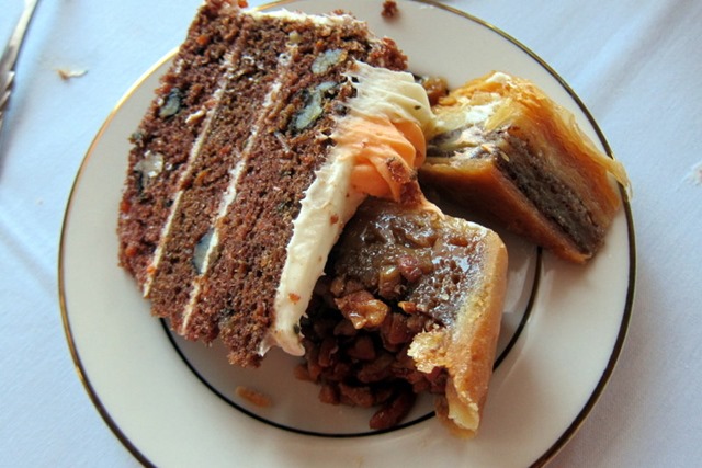 For dessert, I started with the most decadent chocolate mousse and got through about half of it before I turned my attention to the carrot cake, pecan pie and baklava in front of me.