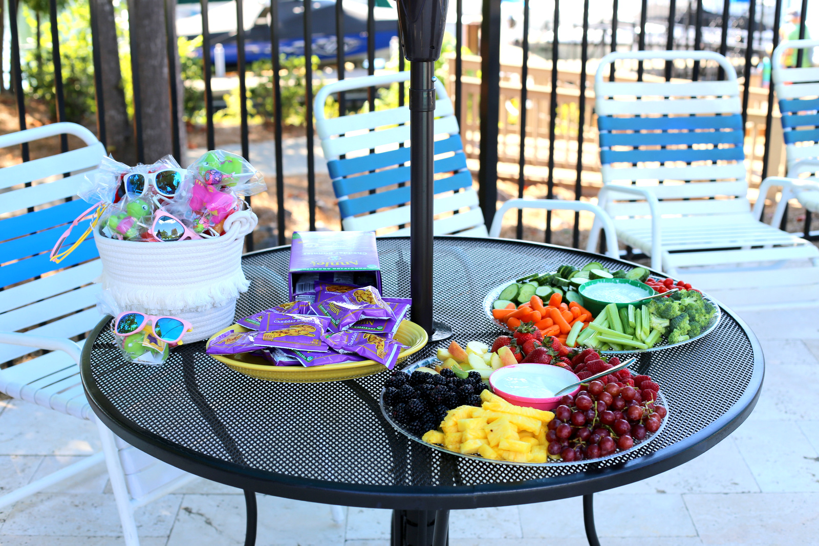 We met up a couple of times to finalize everything and arrived 30 minutes before the party officially started on Thursday to set everything up in the shade on the pool deck and inflate the giant unicorn and dragon pool floats.