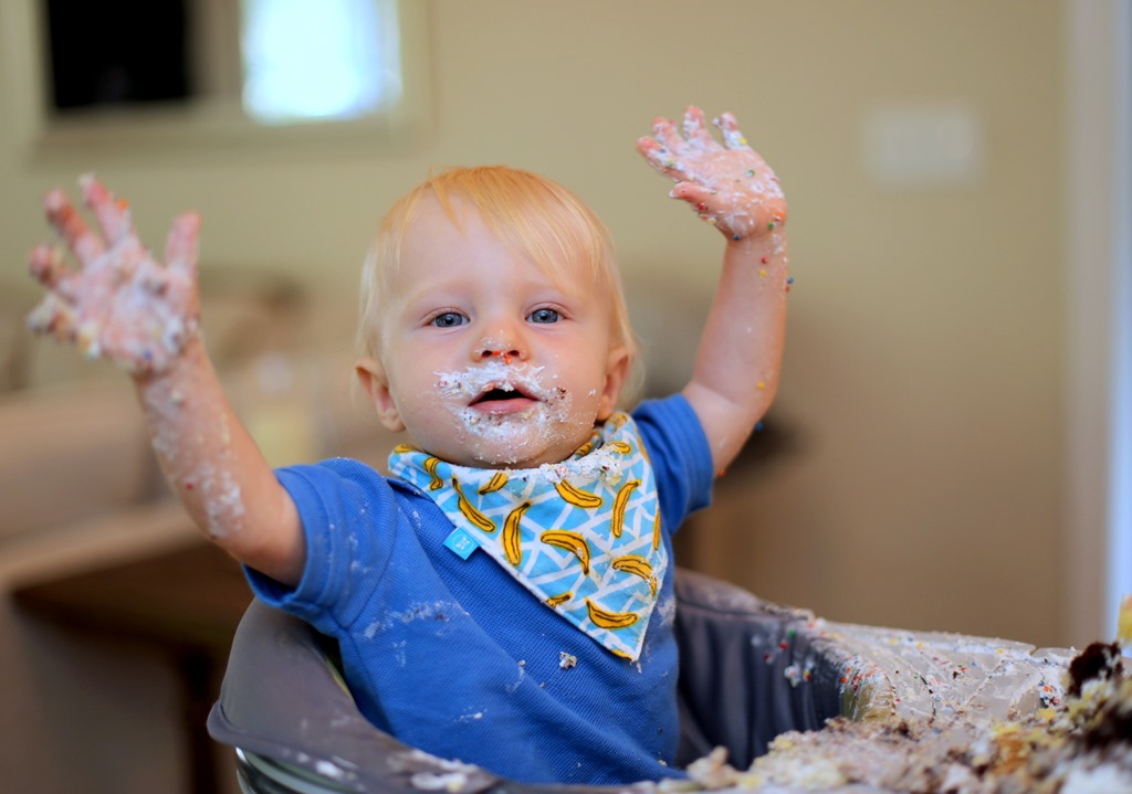 A one year old who clearly was very into the whole smash cake thing…