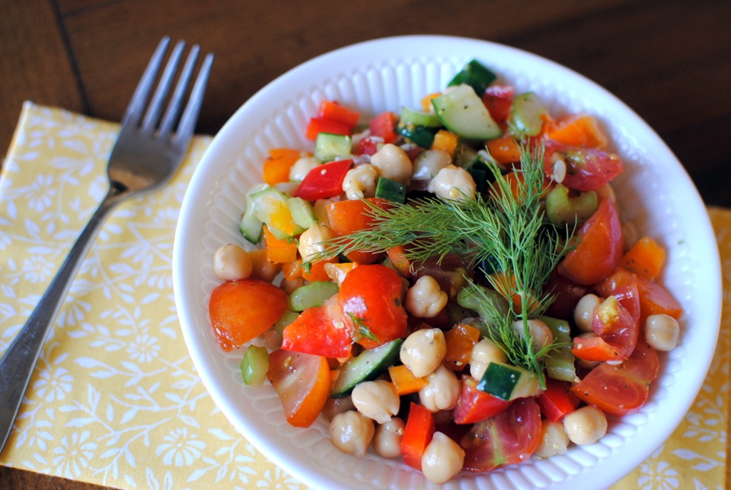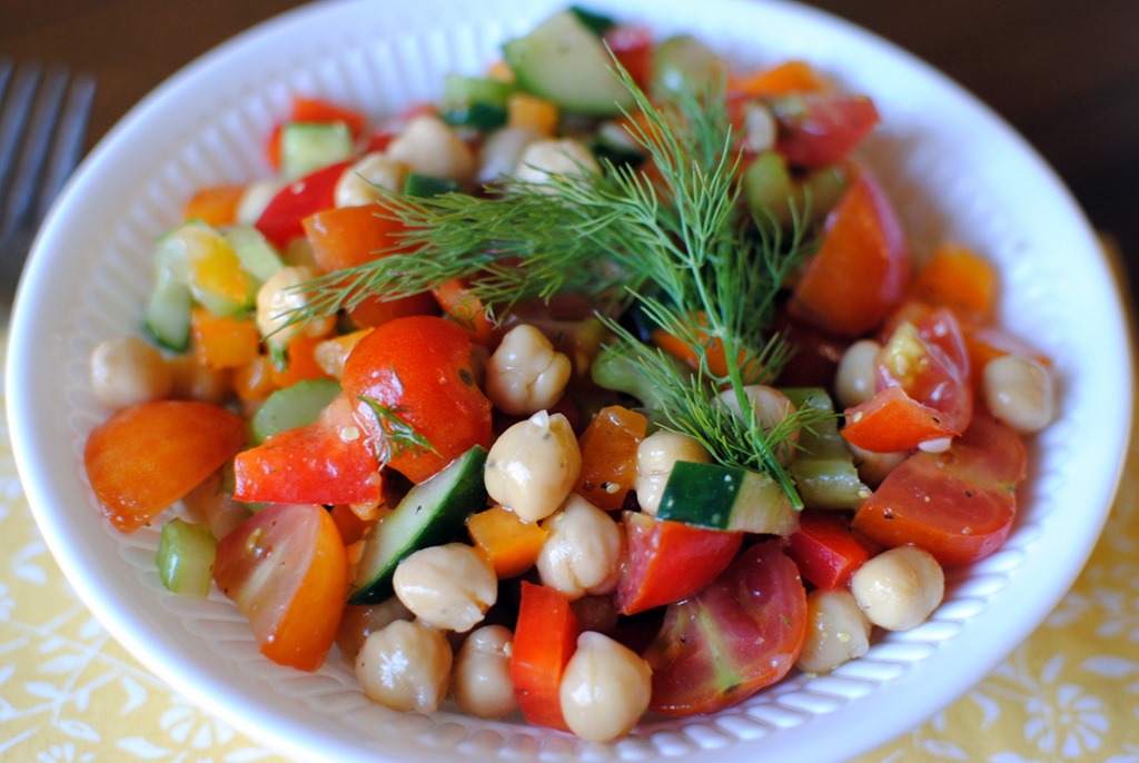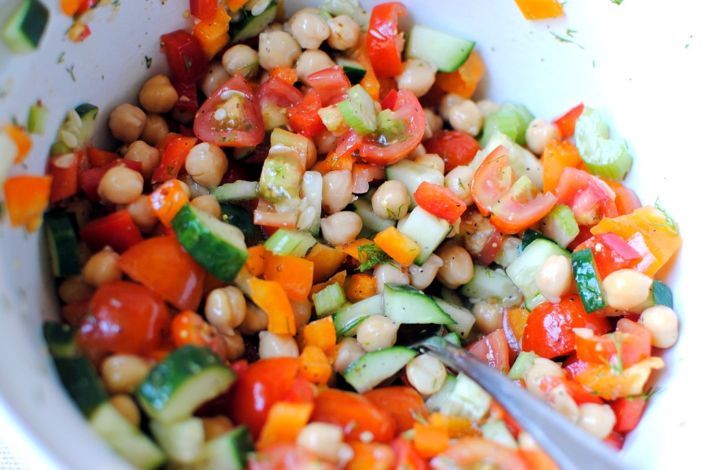 - Pour olive oil dressing over chickpea mixture and toss to coat