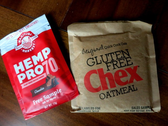 I used a packet of Manitoba Harvest chocolate plant-based hemp protein I got from the IDEAWorld expo last month, a packet of Chex gluten-free oatmeal the company sent me a while ago and milk to make the oatmeal and loved the chocolaty flavor.