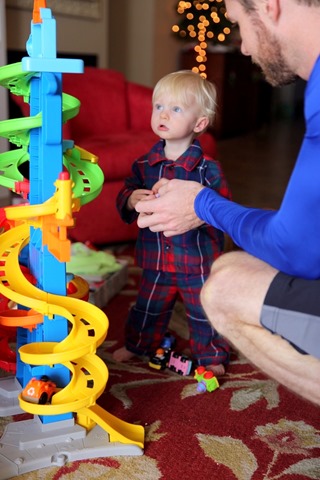I think we are still probably a solid year or so away from Chase really understanding the magic of Christmas but he definitely had fun opening his presents this year! We opted for a “slow unveil” over the course of the weekend so he wasn’t overwhelmed with a bunch of presents at once and that seemed to work well. He was especially excited to open up a giant car ramp toy from Aunt Leslie and Uncle Ross and immediately said “car!” when he saw the cars on the box.