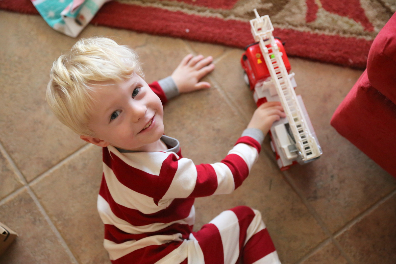 (In case you’re wondering what a three-year-old looks like when you tell him he has to stop playing with his new toys for 2.5 seconds for a quick family photo, check out Chase in the above picture.)