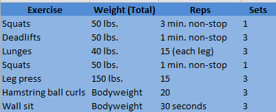 I began my workout with 20 minutes on the elliptical before completing this leg workout: