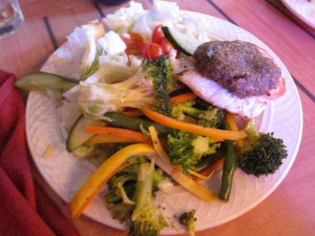 I loaded up on buttery vegetables, salad and some kind of white fish topped with a bizarre-looking nutty topping that I actually really liked! The fish was so moist and flavorful and I practically licked my plate clean.