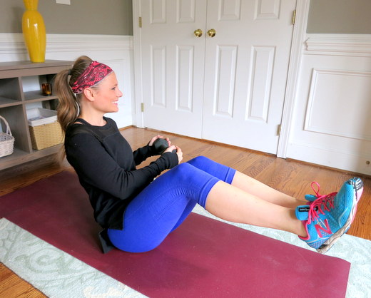 The workout includes seven different core exercises that utilize a dumbbell, though you can also complete the workout without a dumbbell if you prefer. You’ll complete each of the exercises for 60 seconds each, then 40 seconds and finally 20 seconds for the final burn. I always like it when the first round is the most challenging since it feels like a small victory when you are done! After the first round, the time you spend on each exercise decreases by 20 seconds, but be sure to concentrate on your form to maximize the burn during every round. This is a great ab burner to add on to the end of a cardio workout on days when you want to work your core a little bit before calling it a day!