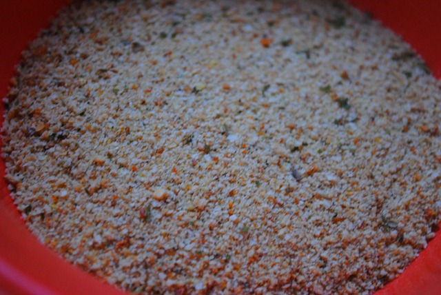 You can also do this with corn flakes that you’ve crushed in a food processor. I coat my chicken tenders in dijon mustard instead of egg. It’s really good!