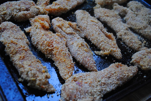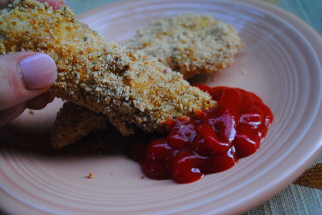 mmm chicken fingers are my fave!! sometimes instead of breadcrumbs, i dip them in a bowl of parmesan cheese with dried basil or oregano. It is SOOO good and smells delish while they’re baking 🙂