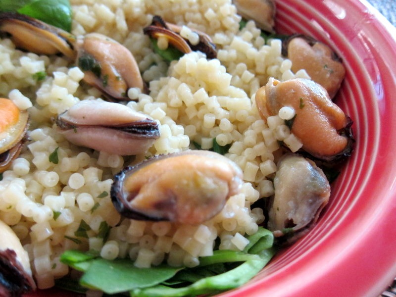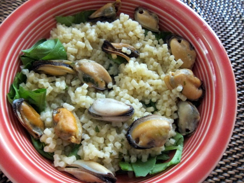 I cooked up some of my favorite teeny noodles and served them along with some spinach and mussels.