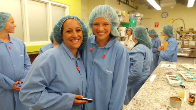 While we ate breakfast at the Technical Center, we listened to a short presentation from Allison Kleinfelter, Hershey’s bubbly senior manager of strategic communications, and provided feedback to the company about what food transparency means to us. Our feedback ranged from believing that food transparency is leaving everything out in the open for the public to read and understand to skeptic thoughts believing that “food transparency” is an overused PR term that leaves a lot to be desired. Allison took note of our feedback and encouraged an open and honest discussion before it was time to get dressed in some snazzy lab coats and hairnets and head off to learn about chocolate product development.