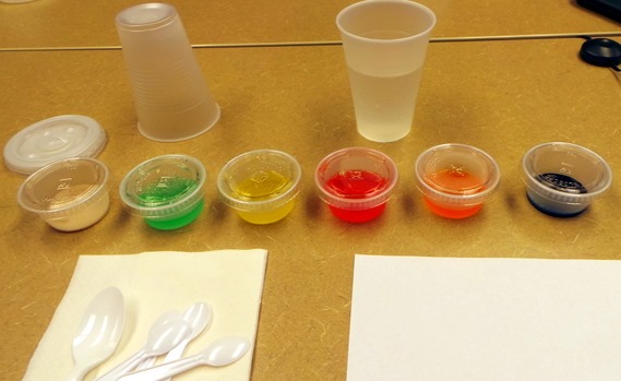 When it came time to try the colored gelatin, we had to guess the flavor in each cup. Unbeknownst to us, the flavors we normally associate with certain colors were all mixed up. Red was actually orange, green was actually lemon, etc. It was crazy how much the visual image of the color influenced our perception of the flavor we thought we were tasting. I asked if the test had ever been conducted blindfolded and we were told that when people cannot see the colors of the gelatin, they can correctly identify the flavors with greater accuracy.
