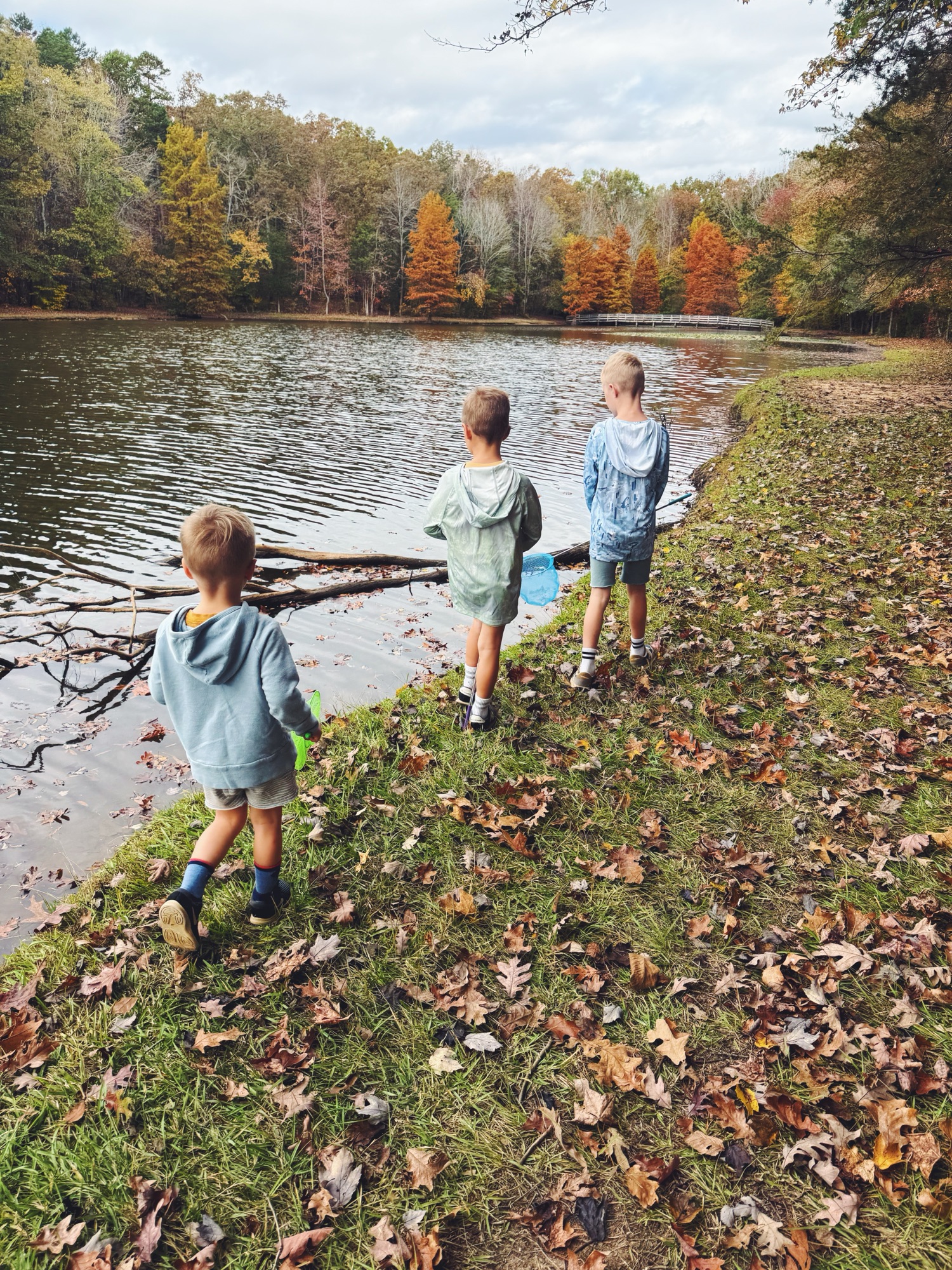 Our boys think nighttime at the campground is the coolest and the earlier sunset time worked in our favor in the fall as opposed to the summer when it doesn’t get dark until close to 9 p.m. With the skies pitch-black by 7:15 p.m. every night, the boys were thrilled to be able to be awake for a while with their flashlights, looking for nighttime creatures and walking along the lakeside trails.