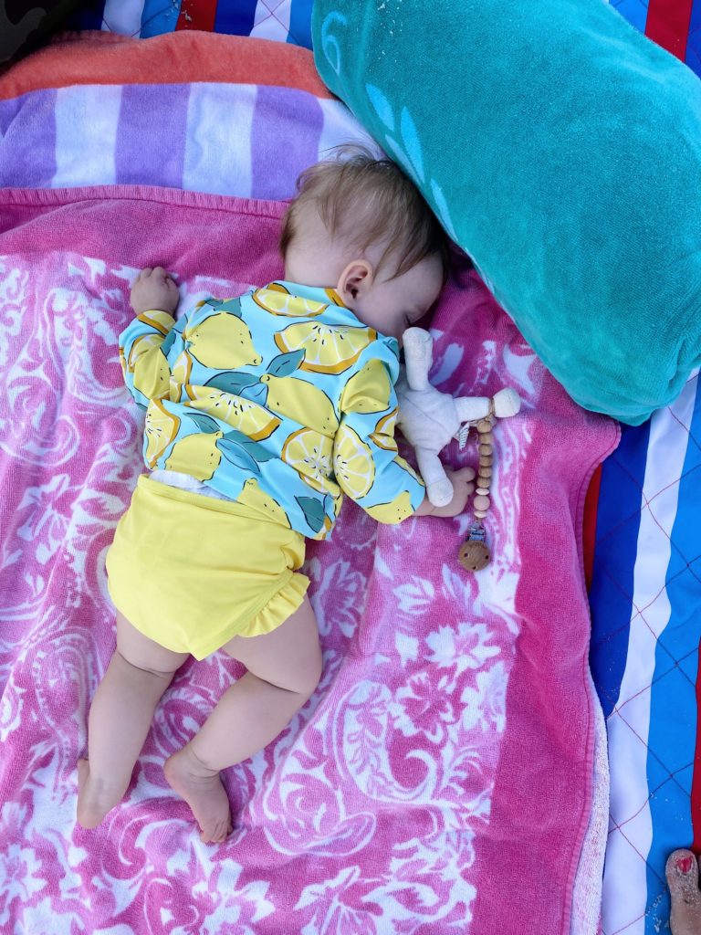 My 5-month-old niece Colette gave the space two thumbs up based on the quality of the shade + towels for her morning nap.
