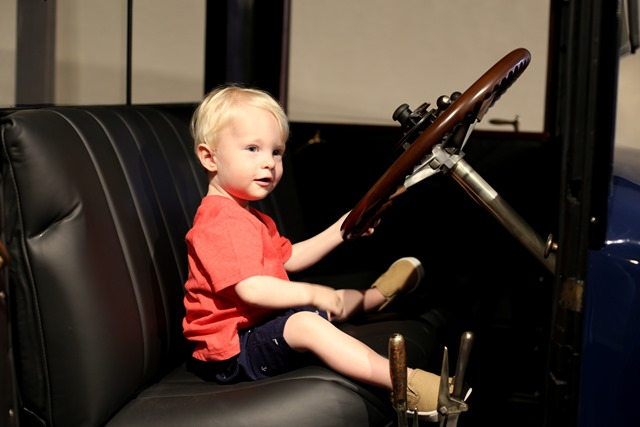 Chase really, really wanted to hop in nearly every car to “drive” it but we did our best to distract him until a friendly docent offered to let Chase steer John Ringling’s Rolls Royce which absolutely made his day.