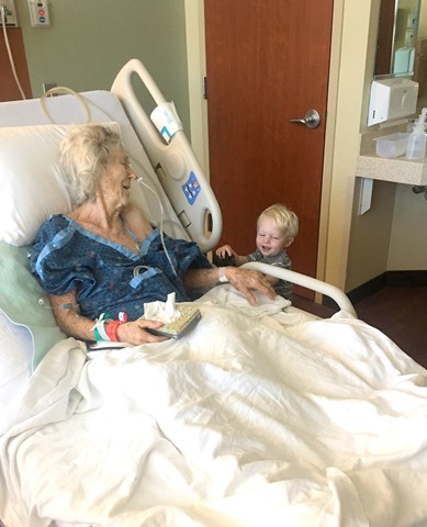 She lit up when we entered the room and was clearly thrilled to be able to see her great grandson and play trucks along her bedside with him.