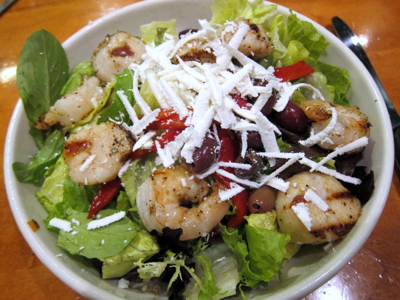 For my entrée, I ordered the Insalata Johnny Rocco, which came with grilled shrimp, scallops, roasted red peppers, olives and ricotta cheese, all tossed in a vinaigrette dressing.