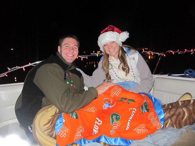 We quickly changed into our new pajamas and bundled up for our traditional Christmas Eve boat ride.