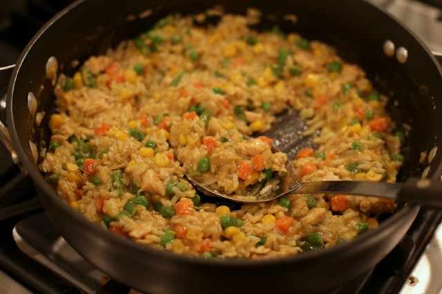 By the time dinner rolled around, I wasn’t sure what to make since I ate half of my initial dinner plan for me and Ryan at lunch. I ended up throwing together some frozen veggies, rice, chicken and Korma Simmer Sauce I picked up a while ago at ALDI in a skillet and we actually loved the random combination of flavors.