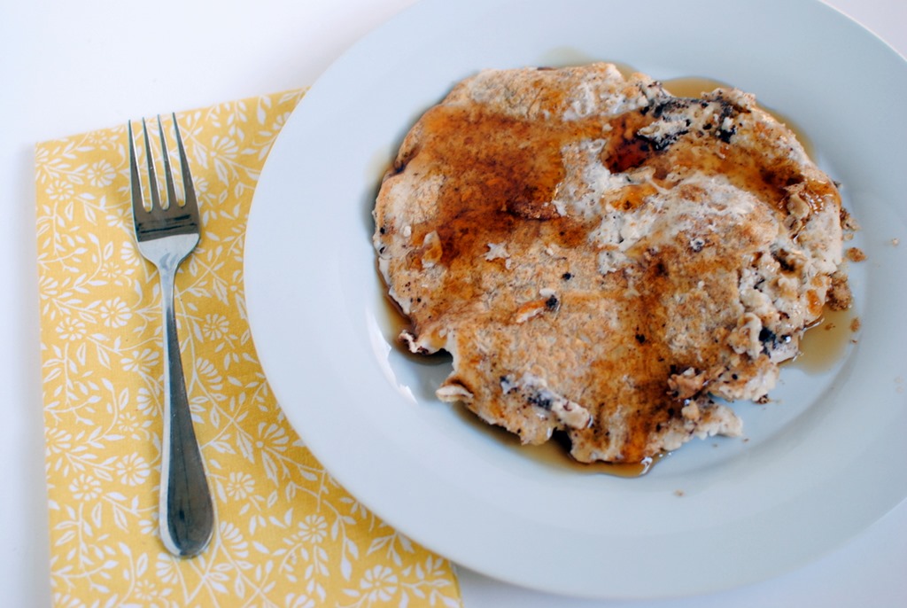 An egg white and oatmeal protein pancake, of course! Now that these pancakes are back in my regular breakfast rotation, I cannot seem to stop eating them. I’ve been adding a scoop of peanut butter to the mix before preparing the pancake in a skillet and love the added staying power and flavor. Peanut butter everything, baby!