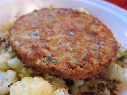 Knowing that I had curried cauliflower and a flavorful Morningstar Asian veggie burger waiting for me made me long for noon all morning.