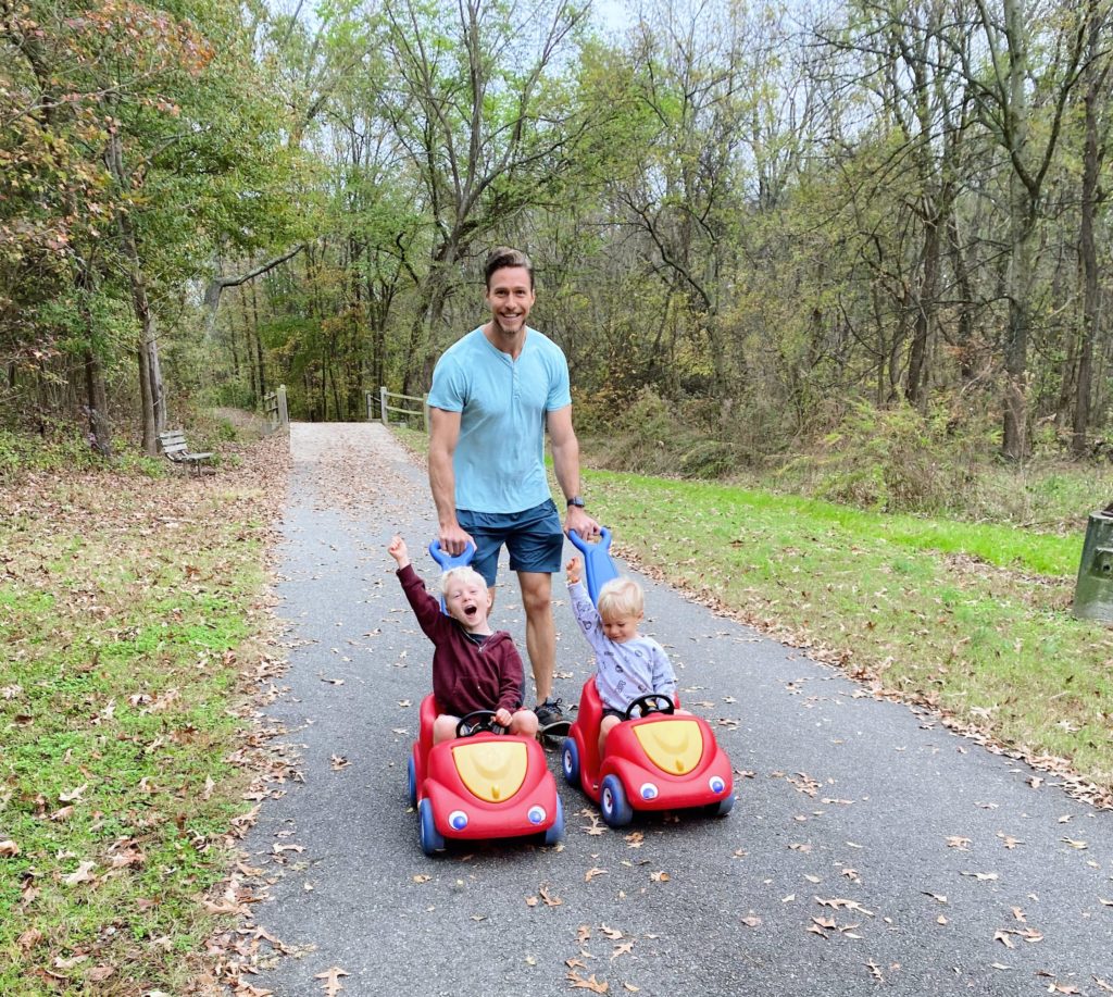 Remember a while back when I found a used push car for Ryder at the beginning of quarantine? Well, the family had a second car available and I nabbed it for Rhett. Naturally Chase wants to ride in it as well whenever Ryan pushes the boys crazy fast and has them “race” down the sidewalk or greenway.