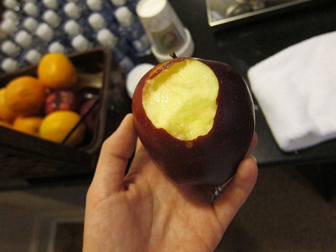 The apple and water helped fend off serious hunger through my shower and morning packing until we were able to stop for breakfast on our drive back.