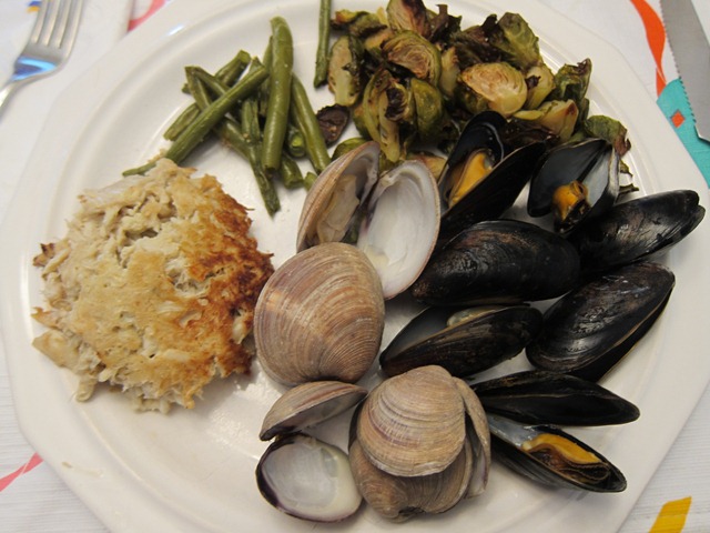 I filled my plate with mussels, clams, a crab cake and veggies and went back for seconds thirds of the shellfish and grabbed a corn-on-the-cob, too.