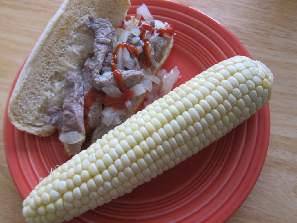 And yes, that’s a normal-sized hot dog bun. That should tell you how ridiculously large the corn on the cob was that we ate with our sandwiches.