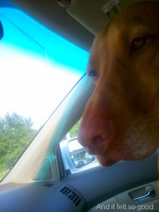 Sadie preceded to make us pay for leaving her behind over the weekend by gassing up a storm and hot boxing our car for the entire two-hour drive.