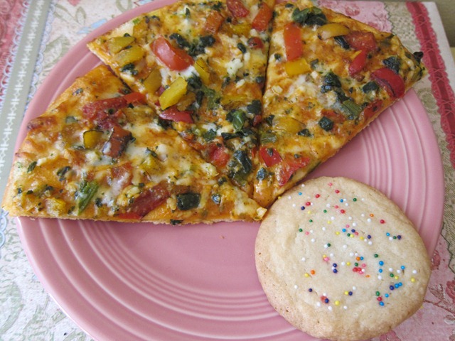 glad u’re back safe and sound and pizza + cookies makes for a tasty din din! 🙂