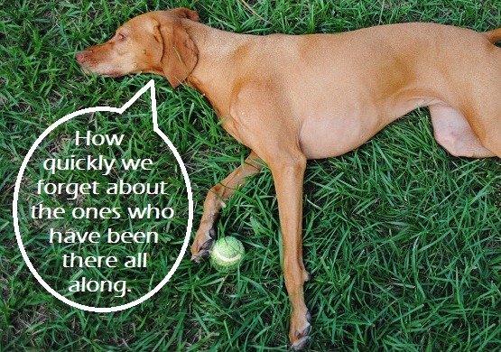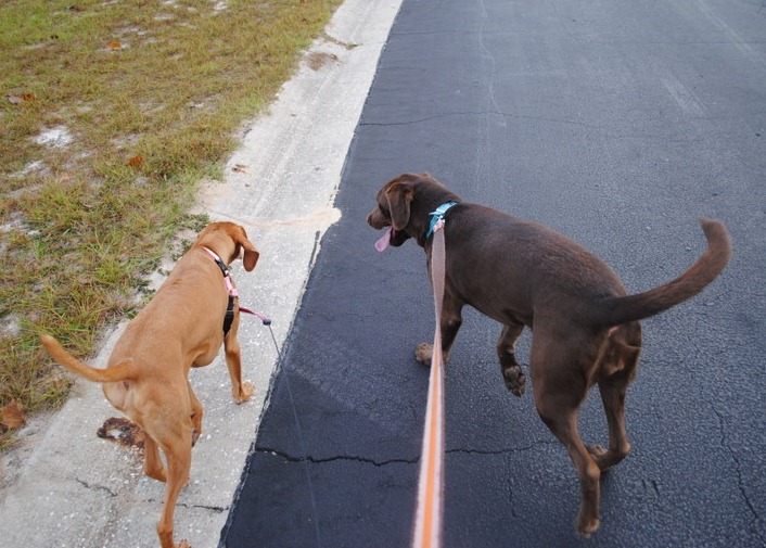 It seemed like when one dog would stop to smell something glorious, another would find a stick to play with, inevitably tangling the leashes and making me look like I was having a meltdown as I was being yanked every which way.