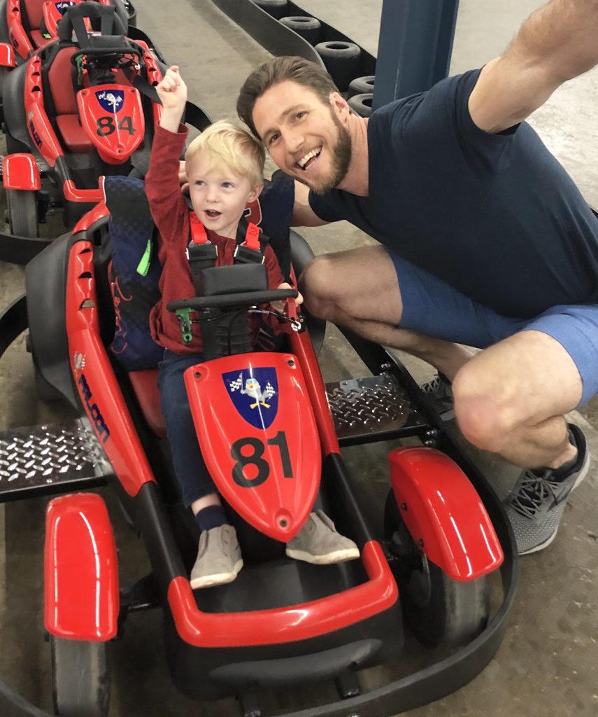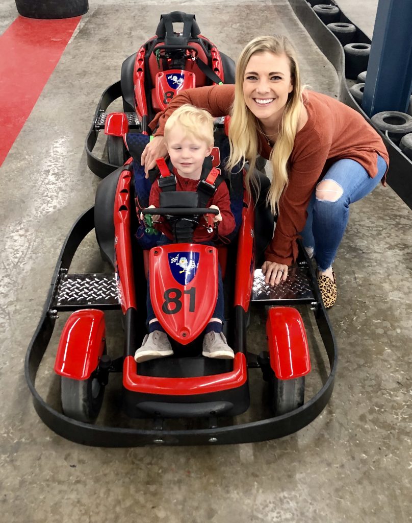Our Saturday began with a delicious English muffin breakfast casserole (stay tuned for this recipe on the blog soon!) and we dug in as Ryder took his morning nap. Once he was up, we headed north to Mooresville and spent the morning go karting!