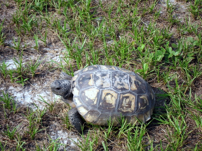 That looks a gopher tortoise….a threatened species here in Florida! Very cool! Those guys have lost a lot of habitat over the years, so I’m glad to see your backyard is a safe haven for one!