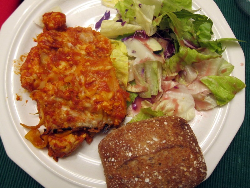 Dinner was worth the wait though and when we finally sat down, I filled my plate with homemade lasagna, salad and a wheat roll.