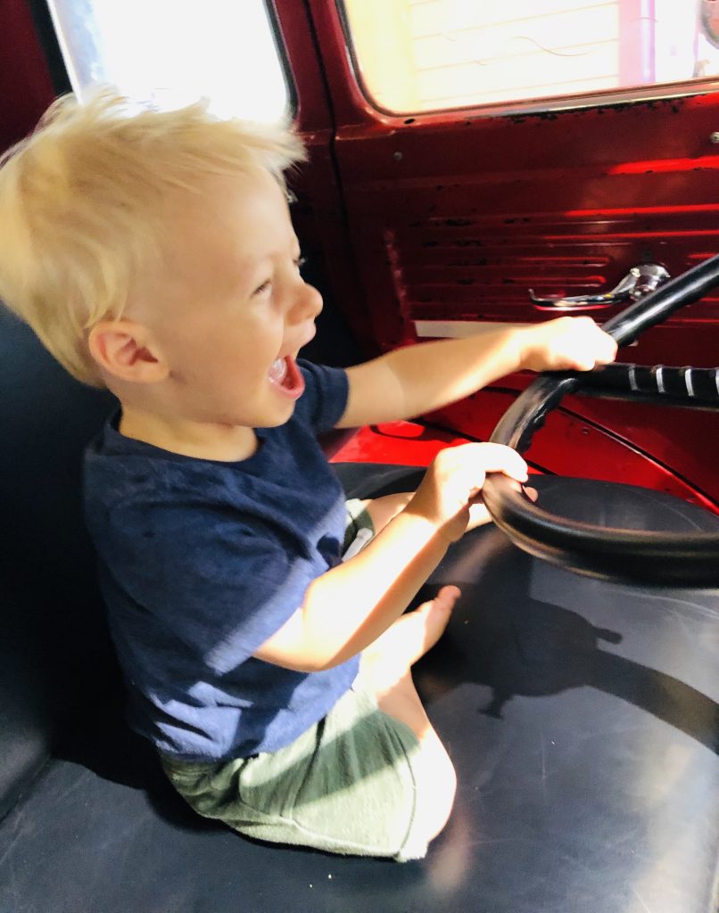 I texted this picture of Ryder to Ryan that I snapped the second he saw Chase abandon the firetruck steering wheel.
