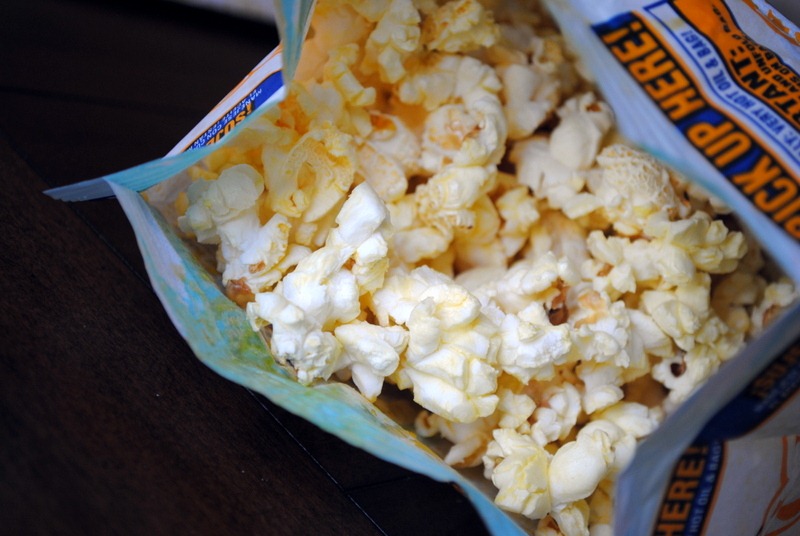 I was still a little hungry after lunch, so I popped myself a bag of snack size butter popcorn.