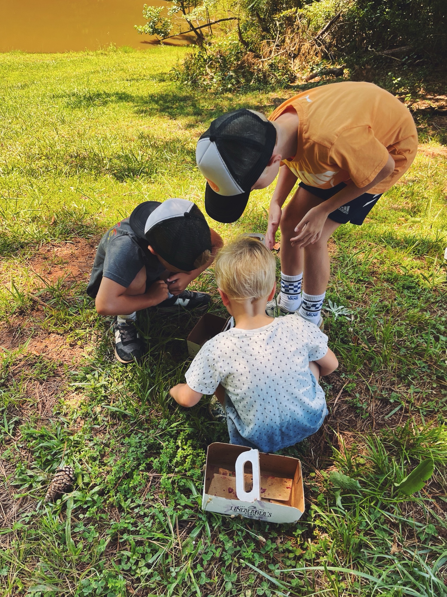 Of course the minute our boys spotted a bunch of baby toads hopping around a pond located on the property, their attention shifted from the berries to the tiny amphibians.