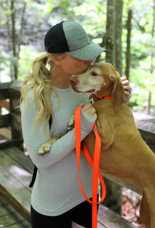 When I began training for half marathons, I did a decent amount of research about running long distances with Sadie and found that vizslas are a breed that can absolutely handle (and LOVE) long distance running. For the most part what I read was to include Sadie in most of my training runs and these runs would basically work as her training runs, too, allowing her to work up to the longer distances we tackled on my long run days. For some of my longer runs, I’d loop back by our house for a water break for Sadie or plan routes around town where I knew we’d have access to water. The heat seemed to bother her more than the distances when we lived in Florida, so planning my runs early in the morning before the heat of the day set in was key!