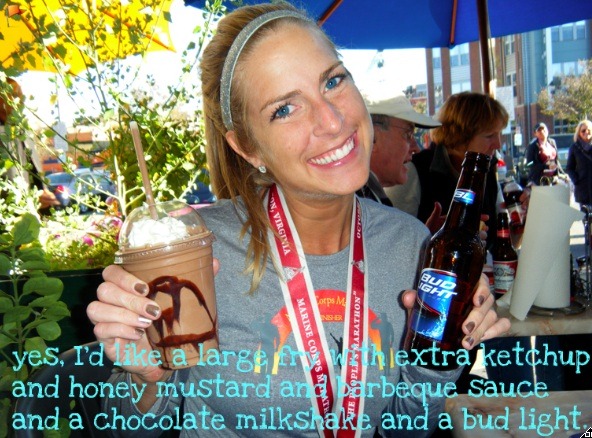 This made me giggle. Mainly because within an hour of finishing my first half marathon, I housed an order of cheese fries. Great minds think alike!